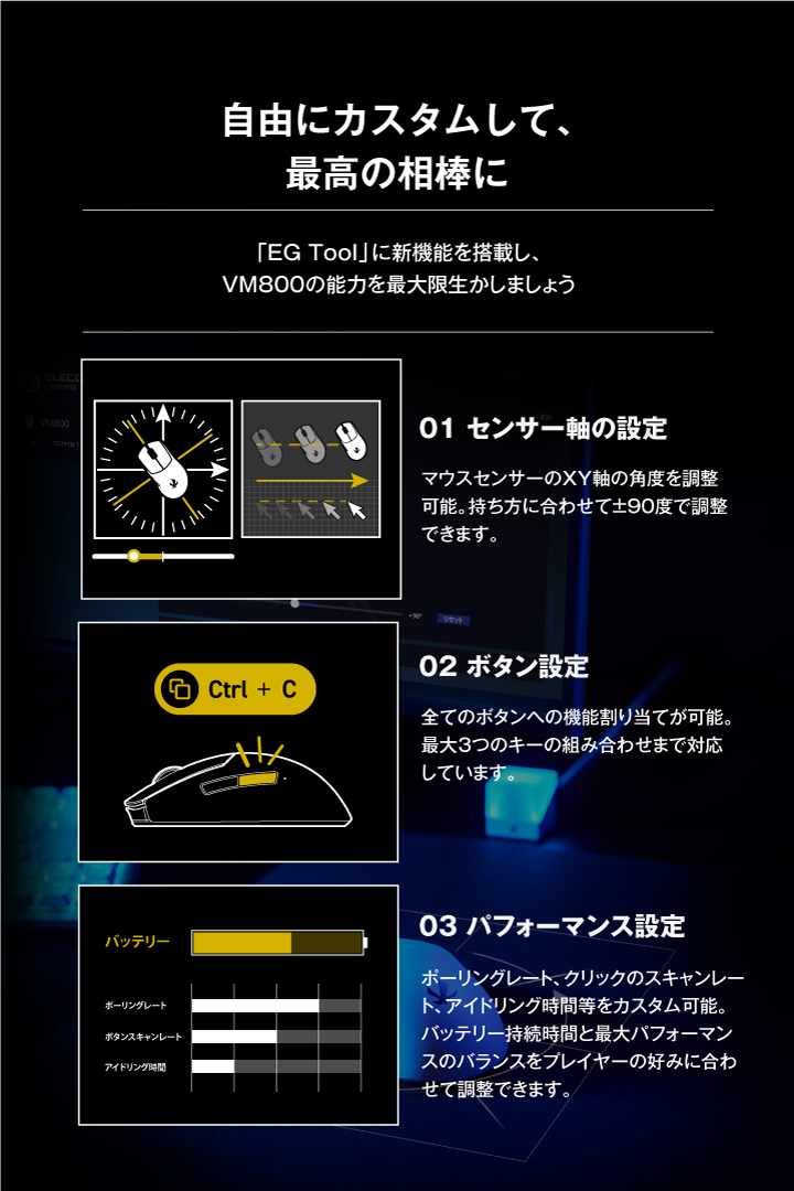 ※ 商品の品質に関わるため、私物のグリップテープやマウスソールを貼ることはできません。